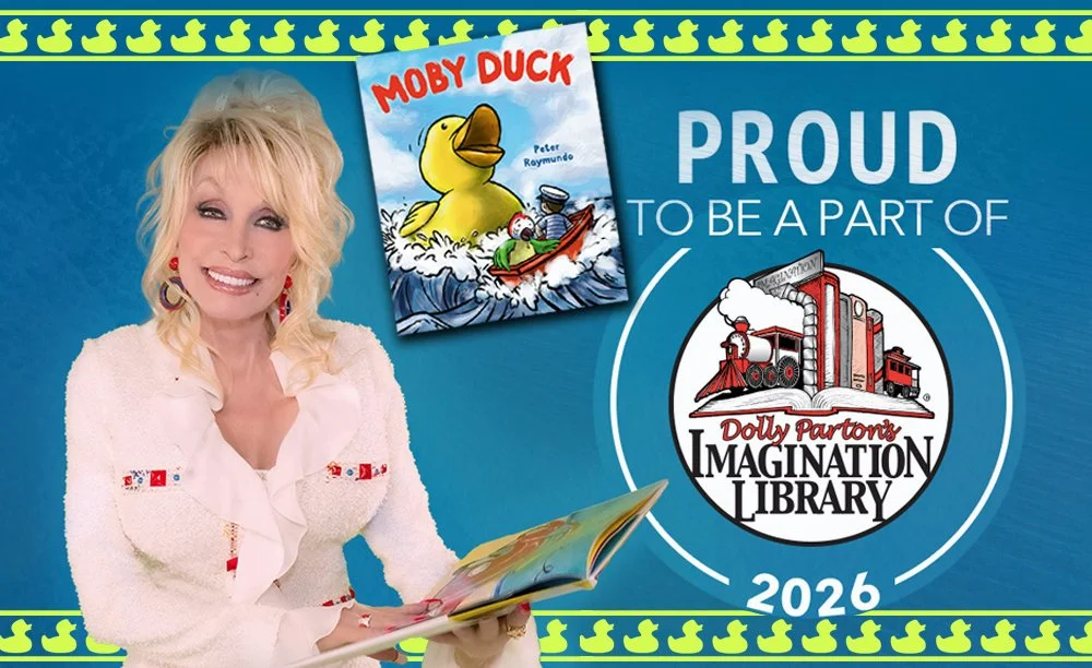 I am honored to announce that my latest picture book, Moby Duck, has been selected by Dolly Parton’s Imagination Library for 2026! DPIL buys tens of thousands of books every year for children from birth to five, and sends them to families free of charge, no matter their income level. Started in 1995 for children within her own community, the program has grown to include all of the United States, Canada, the United Kingdom, Australia, and the Republic of Ireland, and has gifted 304,538,420 books to date.